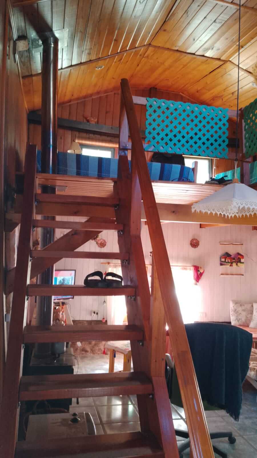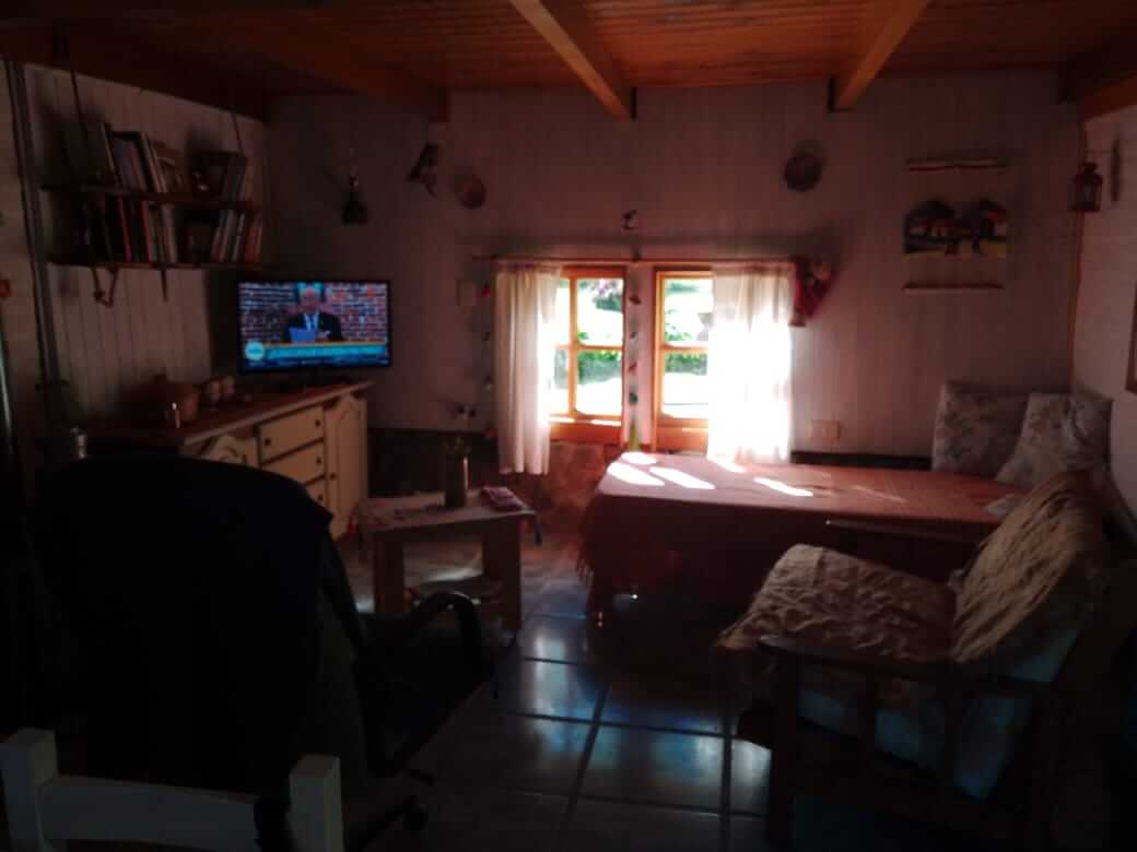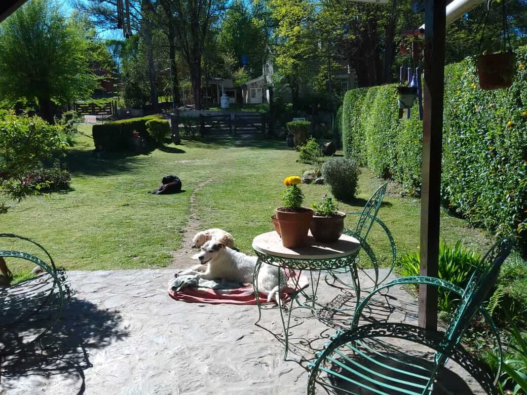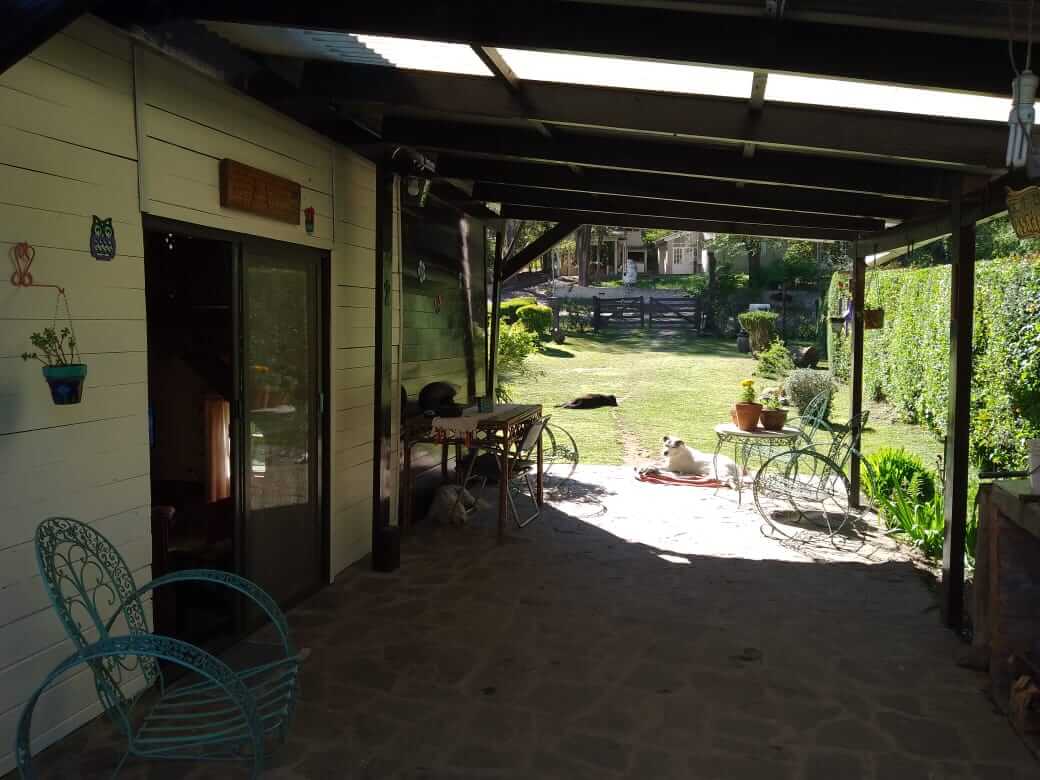 Paredes y techos revestidos en madera que otorgan una atmósfera cálida y serrana, con ventanas que regalan vistas al jardín.