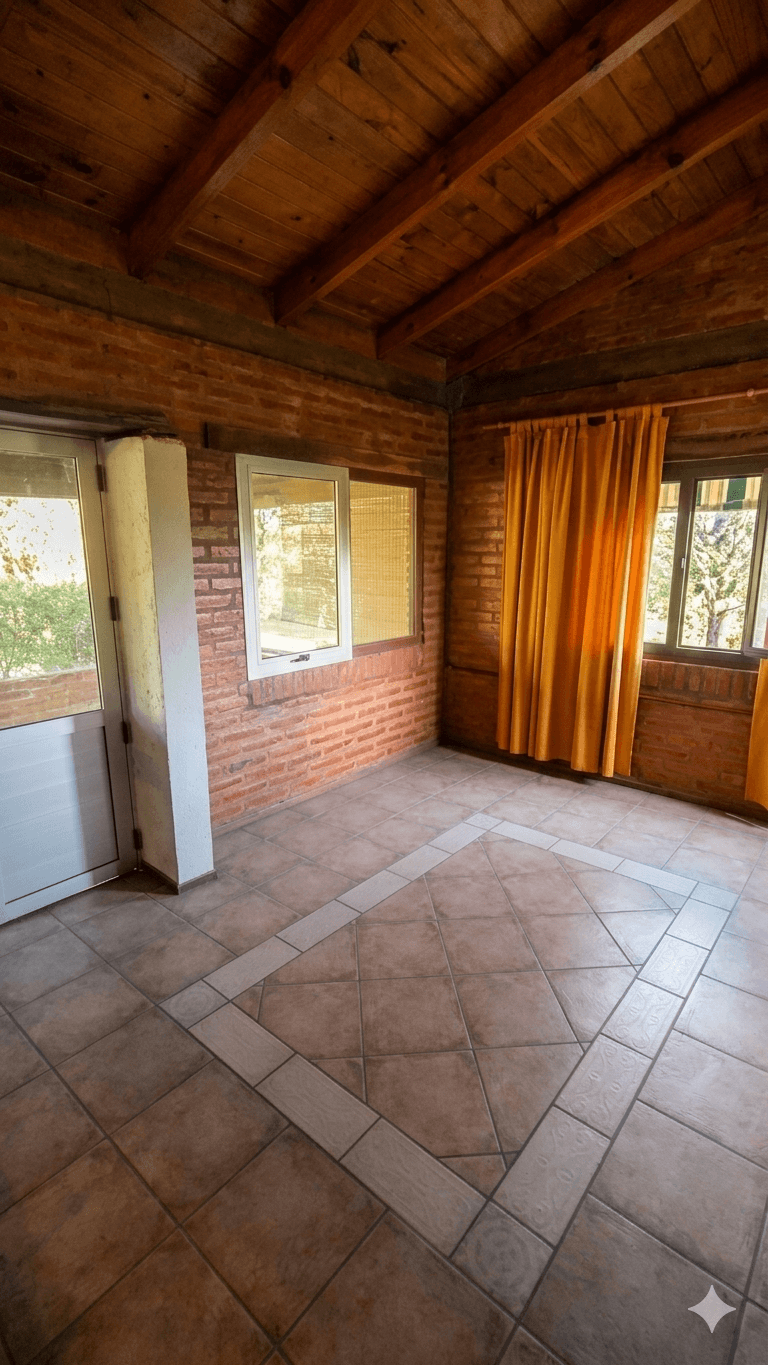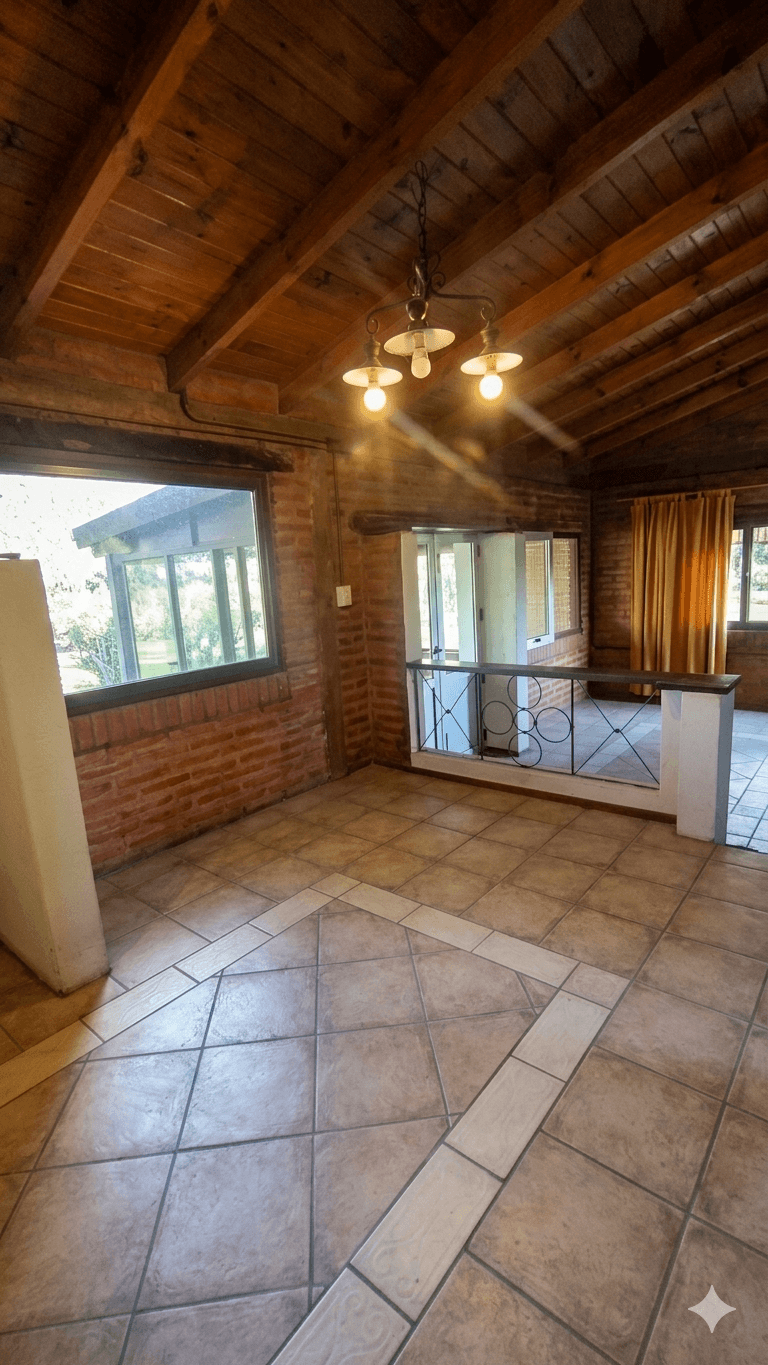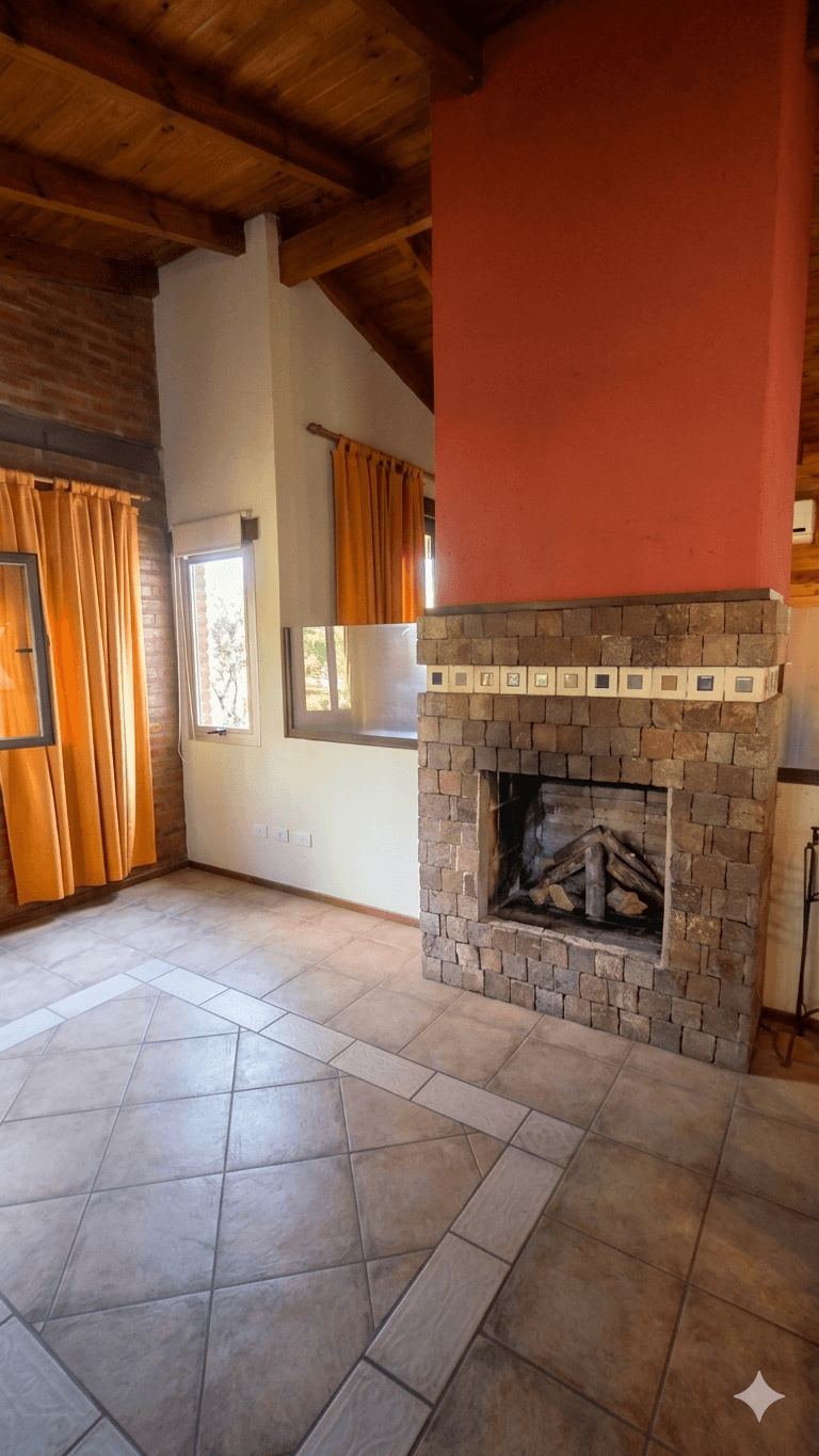Edificados (154 m² cubiertos en total): La casa principal cuenta con un diseño cálido y robusto, donde destaca un living acogedor con hogar a leña revestido en piedra. Se compone de cocina comedor, una habitación integrada tipo loft de generosas dimensiones y un patio de invierno que aporta luminosidad natural.