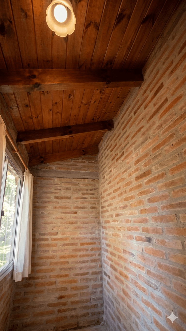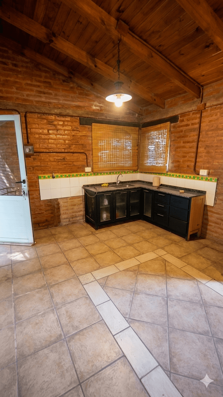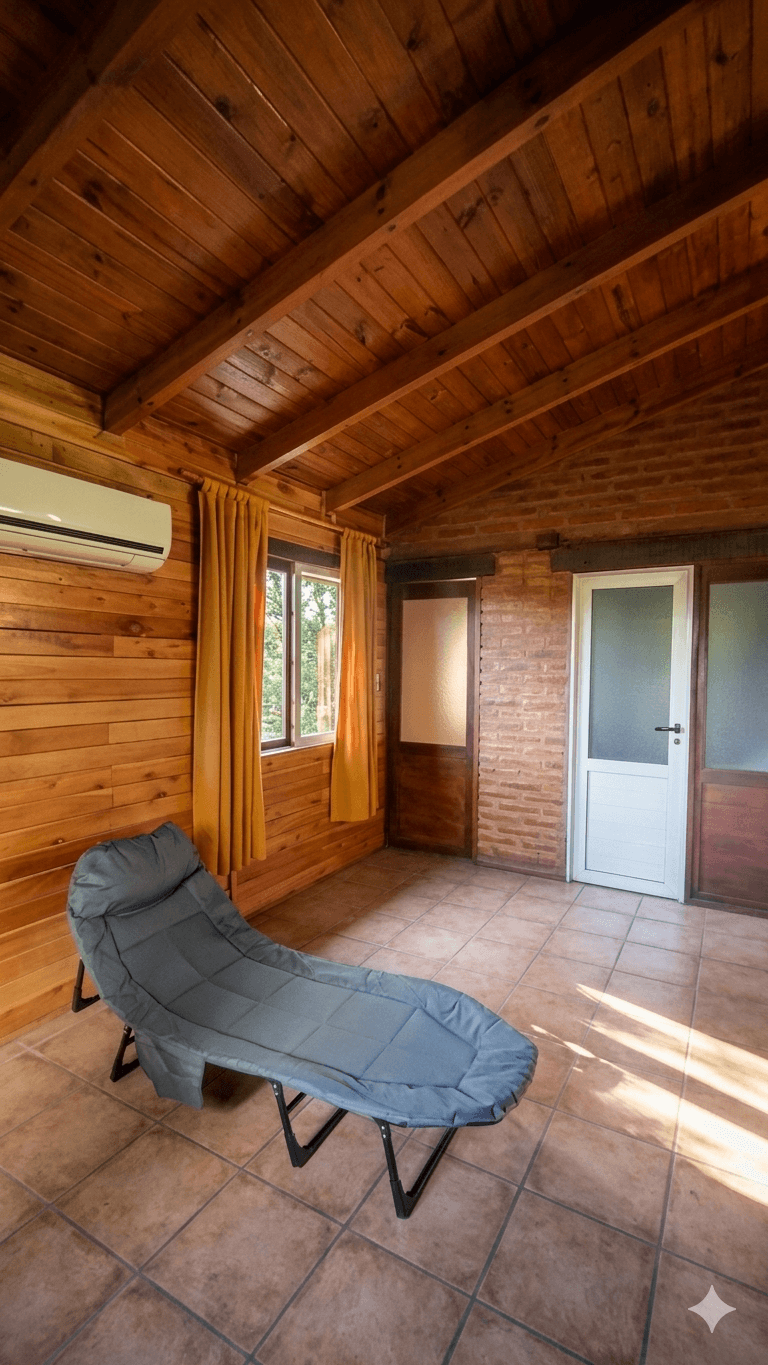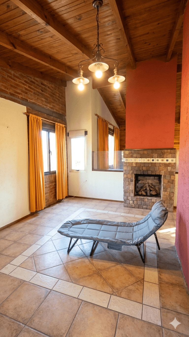 Edificados (154 m² cubiertos en total): La casa principal cuenta con un diseño cálido y robusto, donde destaca un living acogedor con hogar a leña revestido en piedra. Se compone de cocina comedor, una habitación integrada tipo loft de generosas dimensiones y un patio de invierno que aporta luminosidad natural.